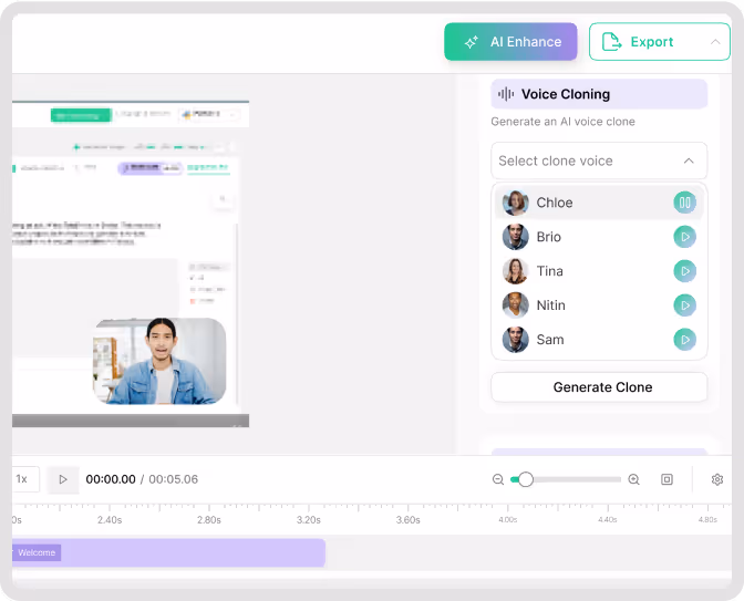 Add AI-powered avatars for a personal teaching touch. Engage learners without stepping in front of the camera. Bring your lessons to life with a human-like presence.