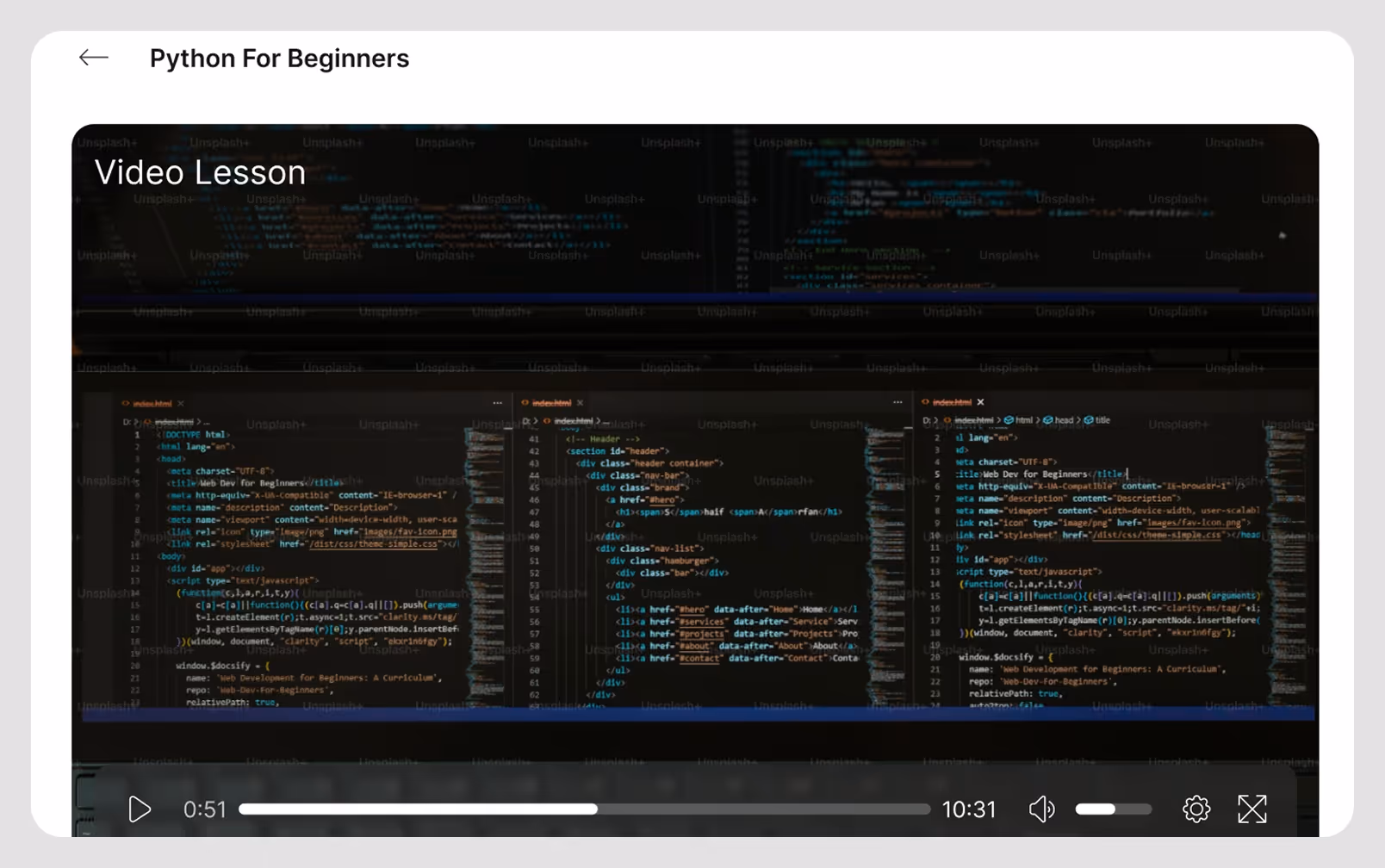 Offer more ways to learn in one place. Videos, code-along lessons, practice exercises, and downloadable materials all come together to keep students engaged and making progress.